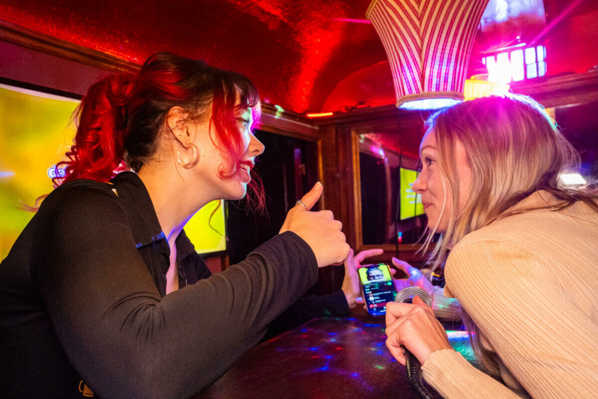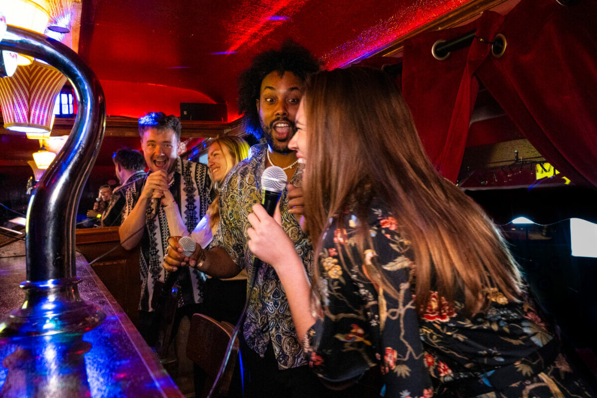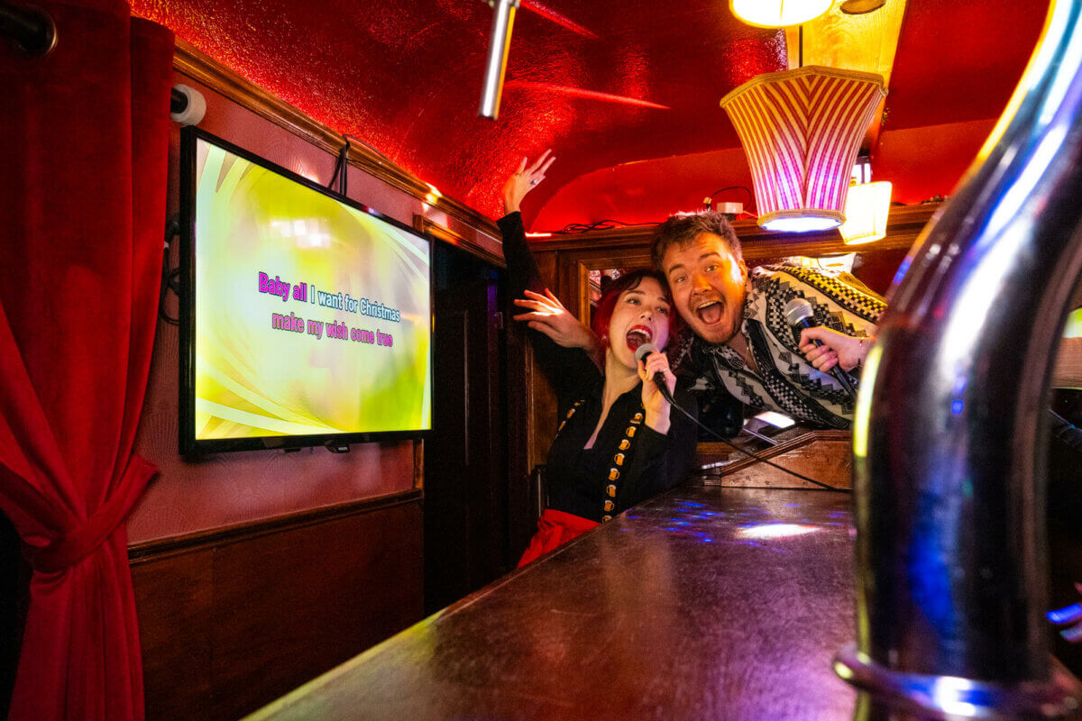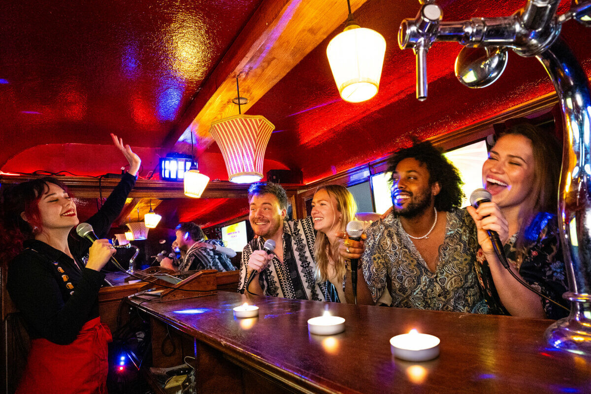- Een bruine karaoke kroeg op wielen